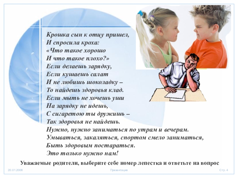 Уважаемые родители, выберите себе номер лепестка и ответьте на вопрос