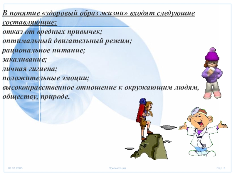 Слайд 3В понятие «здоровый образ жизни» входят следующие составляющие: