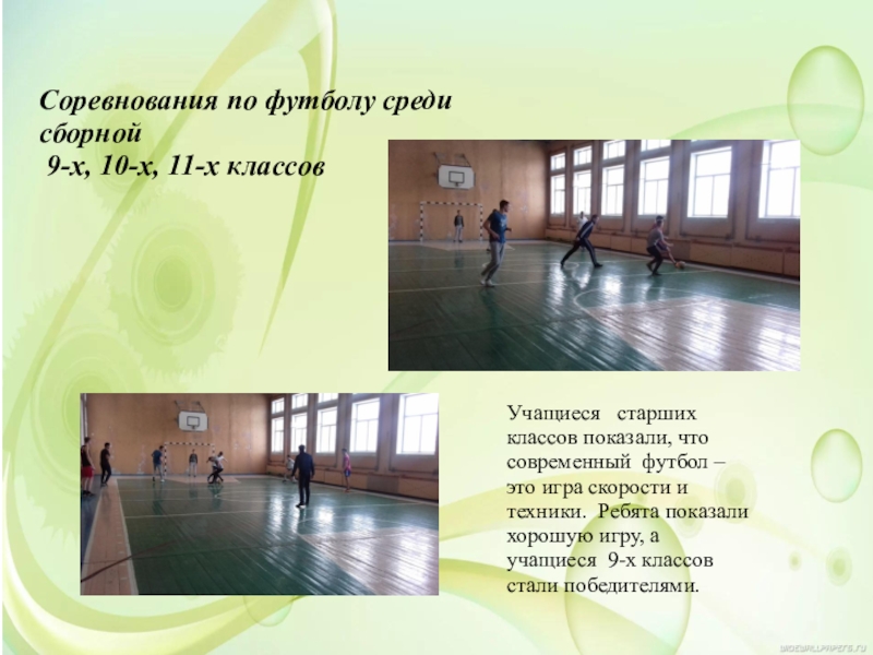 классов показали, что современный футбол – это игра скорости и техники. Ребята показали хорошую игру, а учащиеся 9-х классов стали победителями.
