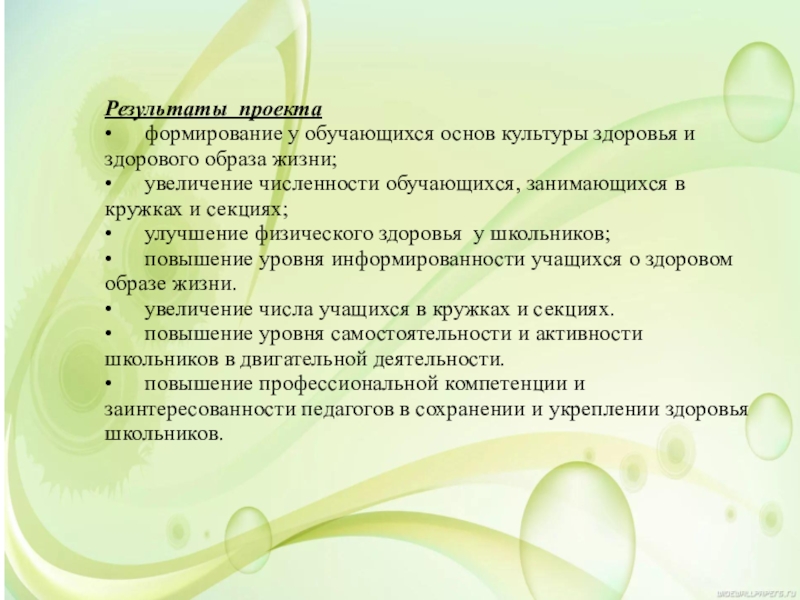 • повышение профессиональной компетенции и заинтересованности педагогов в сохранении и укреплении здоровья школьников.