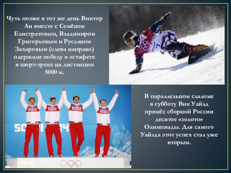 В параллельном слаломе в субботу Вик Уайлд принёс сборной России десятое «золото» Олимпиады. Для самого Уайлда этот успех стал уже вторым.