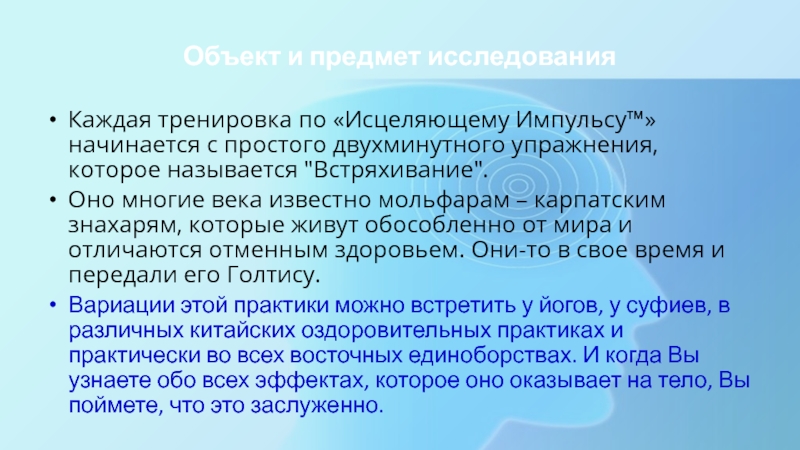 «Исцеляющий Импульс™», это упражнение основывается на строгих медицинских знаниях, хоть и пришло к нам из глубины веков.