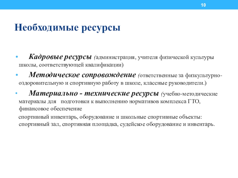 Материально - технические ресурсы (учебно-методические материалы для подготовки к выполнению нормативов комплекса ГТО, финансовое обеспечение