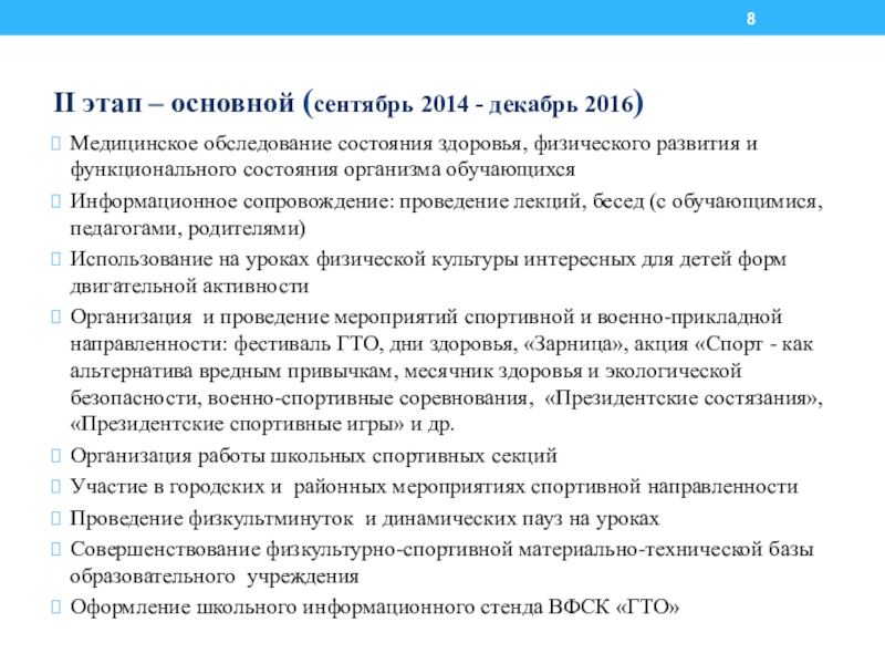 Слайд 8II этап – основной (сентябрь 2014 - декабрь 2016)