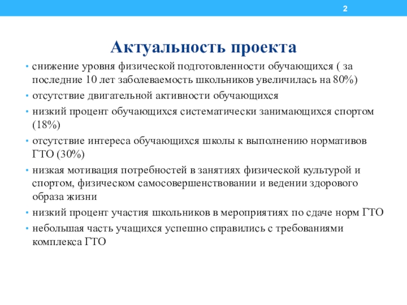 повысить процент участия школьников в мероприятиях по сдаче норм ГТО (80%)