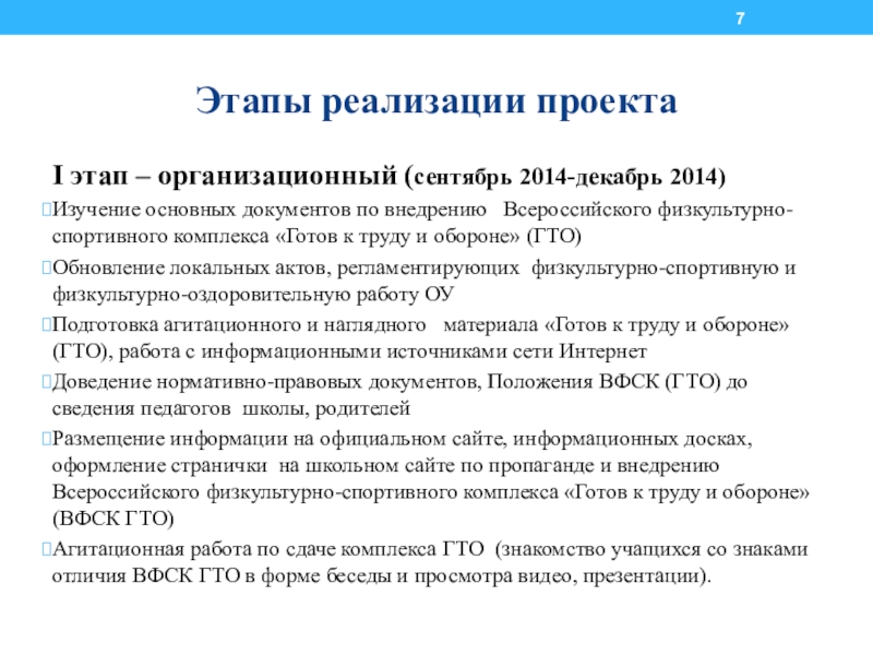 I этап – организационный (сентябрь 2014-декабрь 2014)