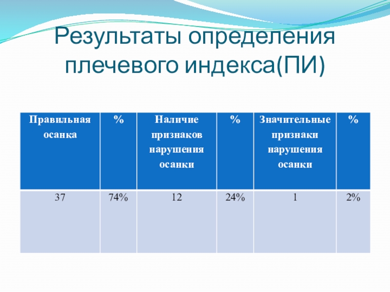 Слайд 30Результаты определения плечевого индекса(ПИ)