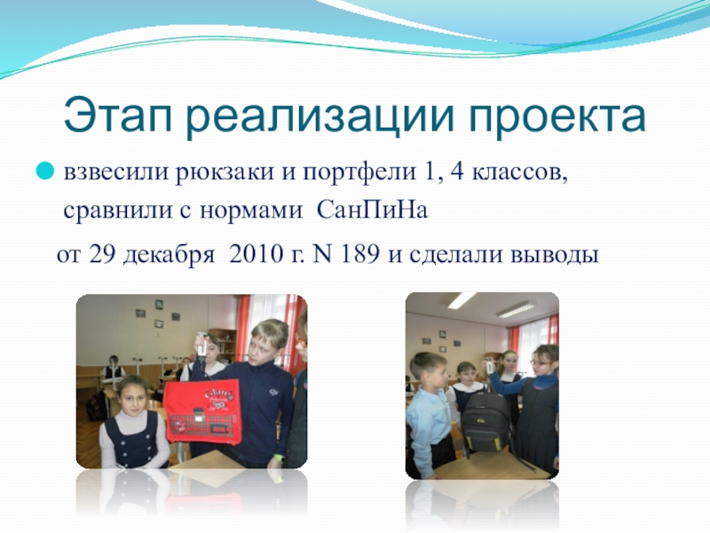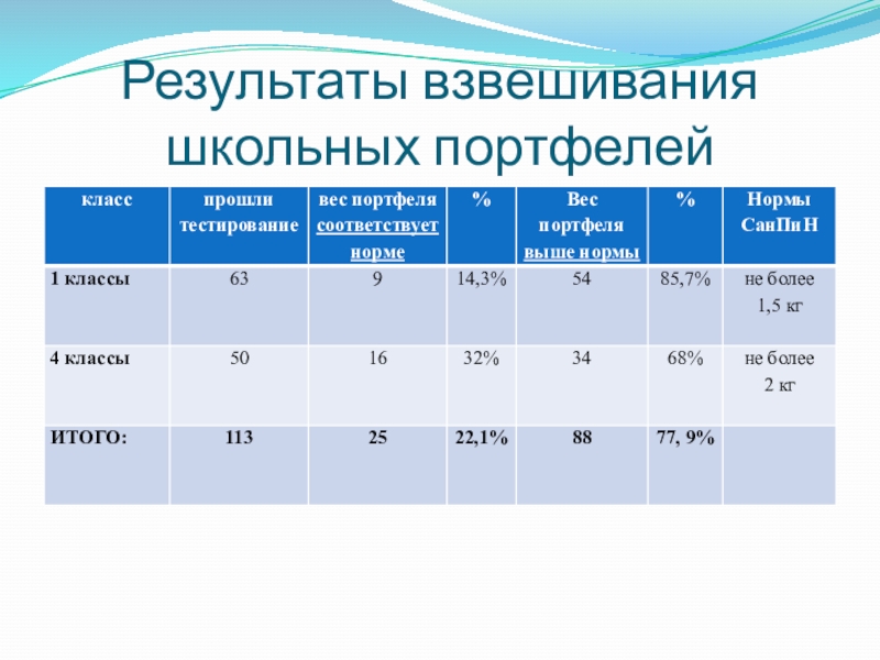 взвесили рюкзаки и портфели 1, 4 классов, сравнили с