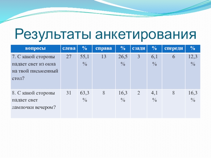 (неправильное освещение письменного стола у 22 учащихся (44,9%)