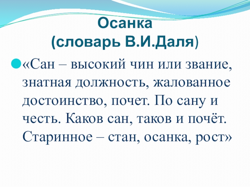 «Сан – высокий чин или звание, знатная должность, жалованное достоинство,