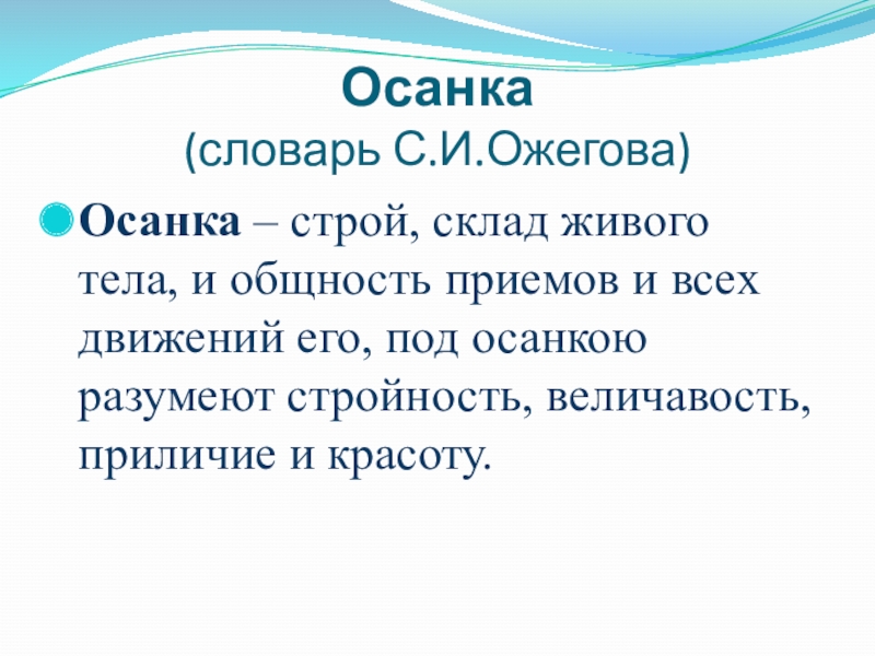 всех движений его, под осанкою разумеют стройность, величавость, приличие и красоту.