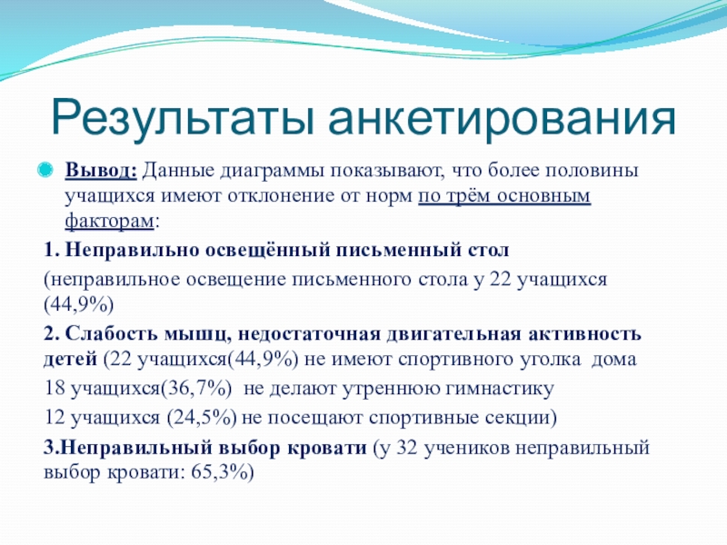 2.Провести тестирование, анкетирование и выявить факторы, влияющие на правильную осанку и состояние здоровья школьников;