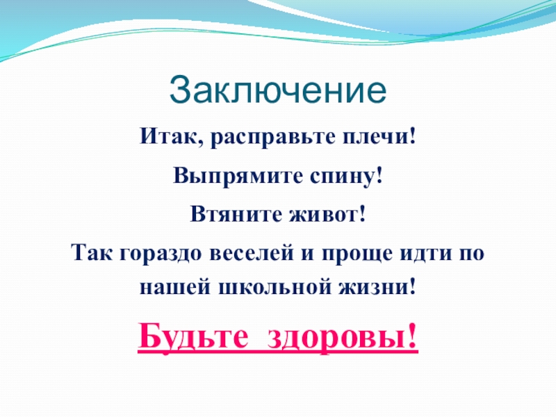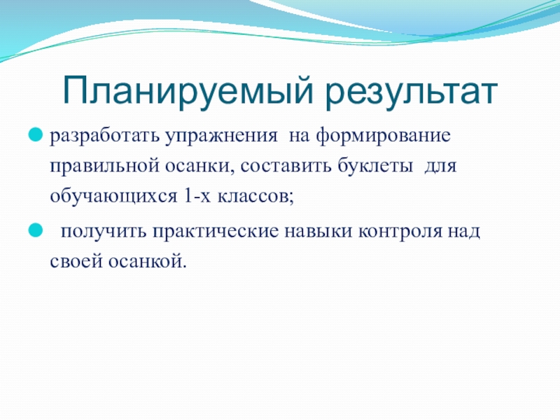 1.Познакомиться с понятием «правильная осанка», результатами медосмотра 1- 4- х классов;