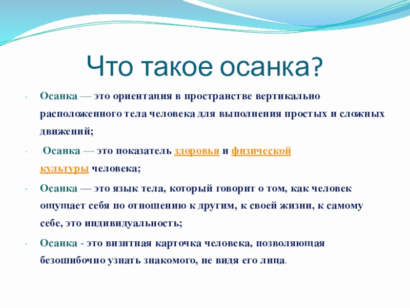 Осанка — это язык тела, который говорит о том, как человек ощущает себя по отношению к другим, к своей жизни, к самому себе, это индивидуальность;