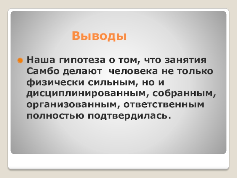ВыводыНаша гипотеза о том, что занятия Самбо делают человека не