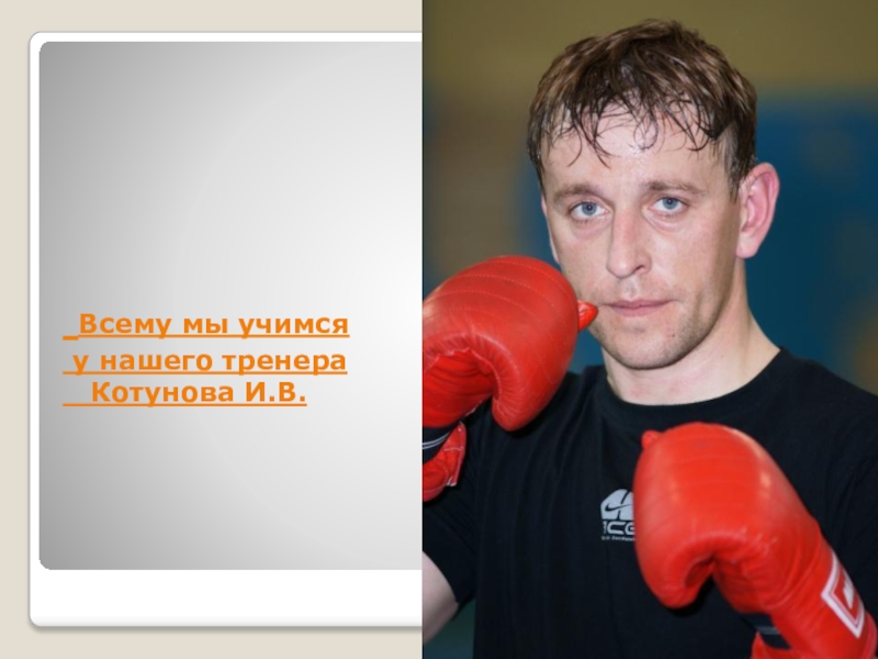 Слайд 18 Всему мы учимся у нашего тренера Котунова
