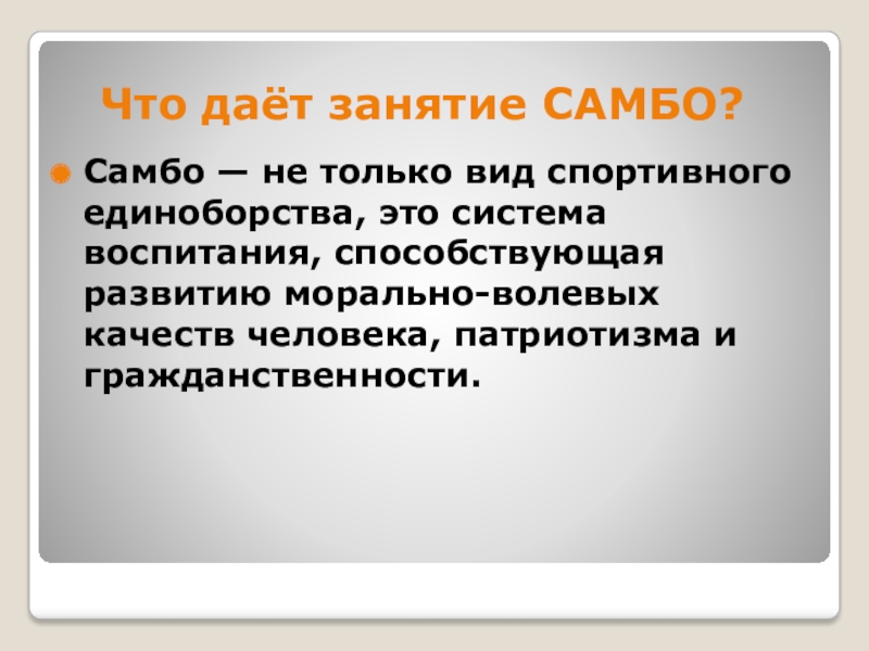 Слайд 10 Что даёт занятие САМБО?