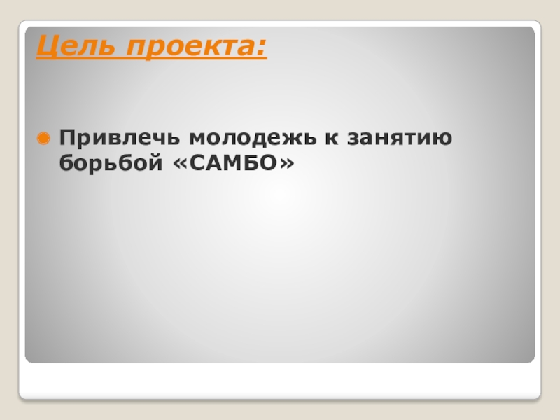 Цель проекта:Привлечь молодежь к занятию борьбой «САМБО»