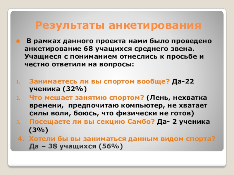 Результаты анкетирования    В рамках данного проекта нами было проведено анкетирование 68