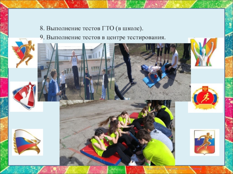 Слайд 188. Выполнение тестов ГТО (в школе).