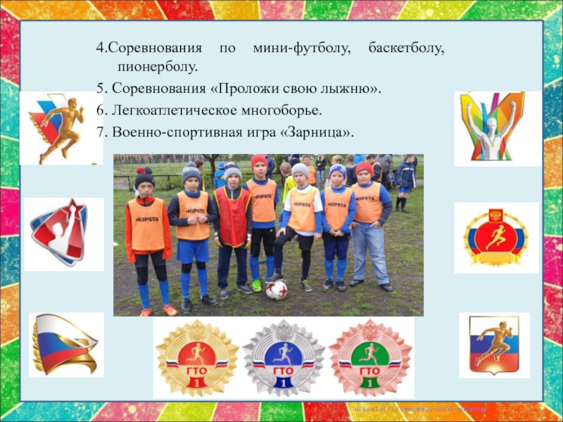 Слайд 174.Соревнования по мини-футболу, баскетболу, пионерболу.