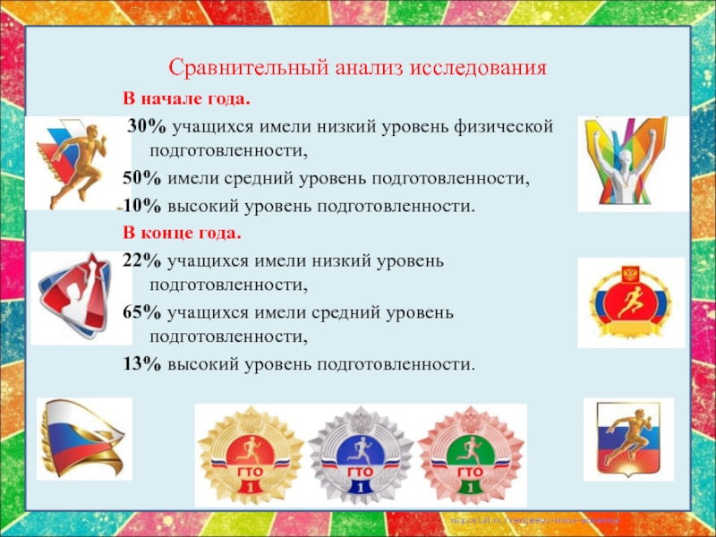 Слайд 26Сравнительный анализ исследования уровня физической подготовленности