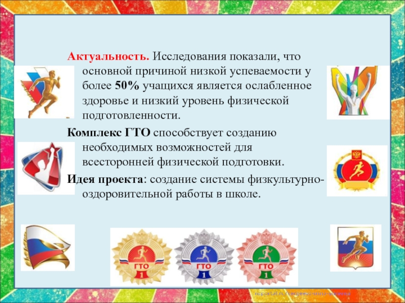 Идея проекта: создание системы физкультурно-оздоровительной работы в школе.