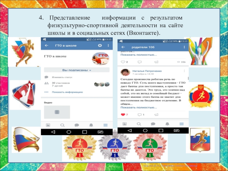 Слайд 104. Представление информации с результатом физкультурно-спортивной деятельности на сайте школы и