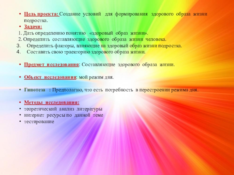 Слайд 3Цель проекта: Создание условий для формирования здорового образа жизни