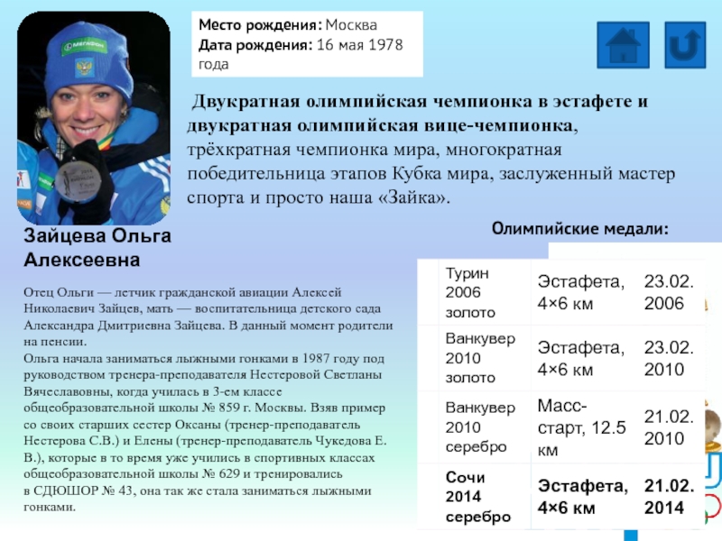 Отец Ольги — летчик гражданской авиации Алексей Николаевич Зайцев, мать — воспитательница детского сада Александра Дмитриевна Зайцева. В данный момент родители на пенсии.