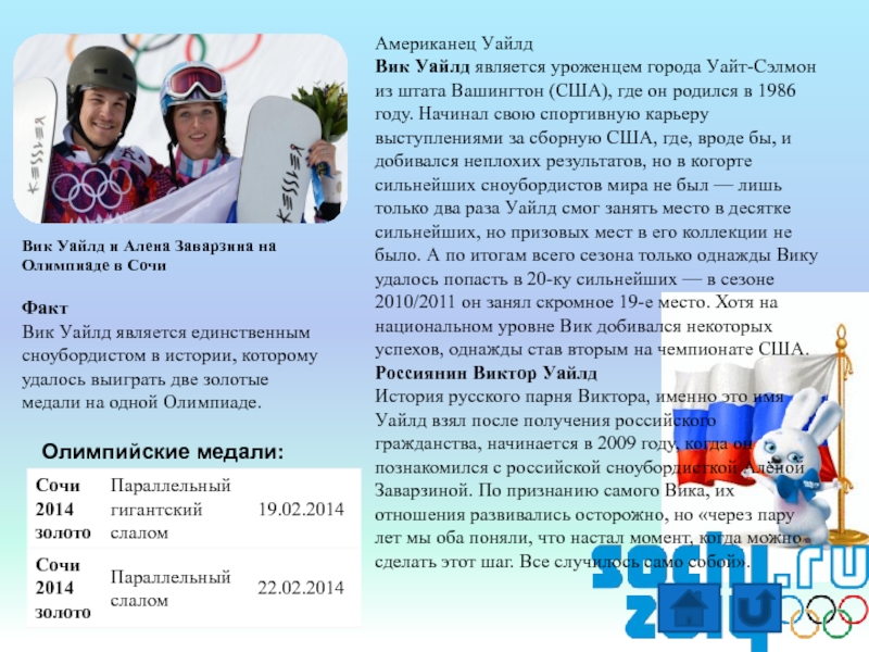 Вик Уайлд и Алена Заварзина на Олимпиаде в Сочи