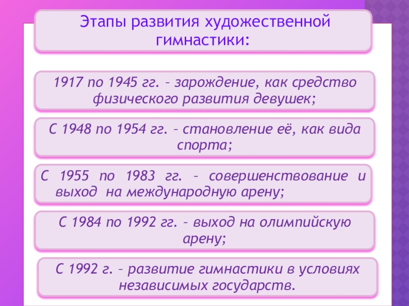 1917 по 1945 гг. – зарождение, как средство физического развития девушек;