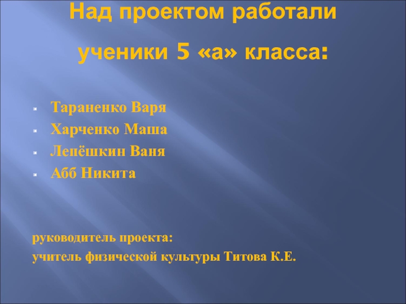 Слайд 25Над проектом работали ученики 5 «а» класса: