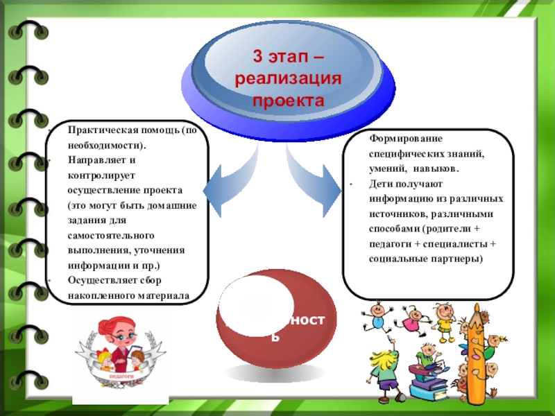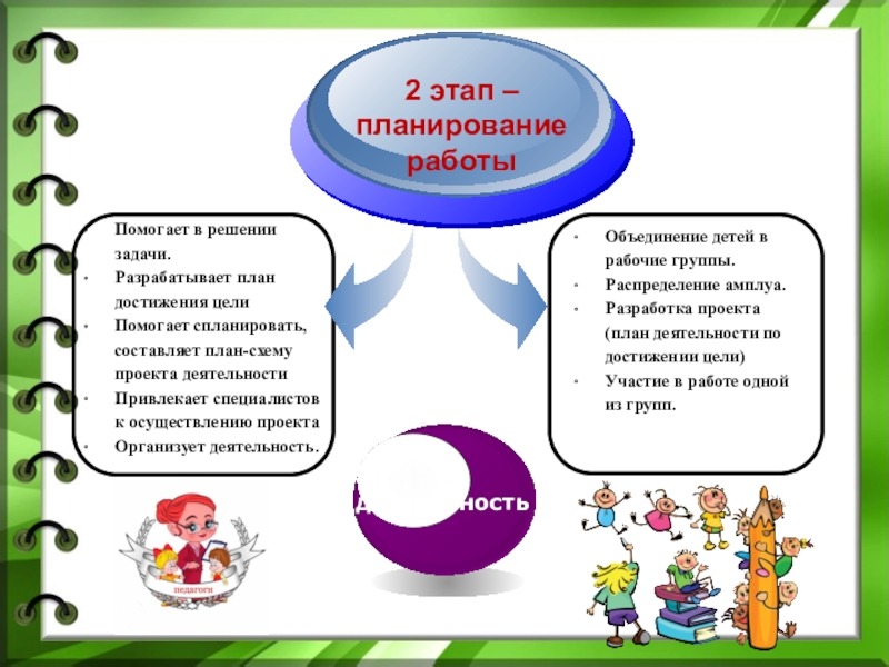 Планирование деятельности детьми при незначительной помощи взрослого; определение средств реализации проекта;