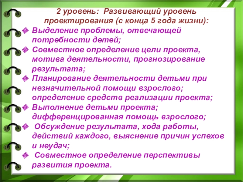 Слайд 232 уровень: Развивающий уровень проектирования (с конца 5 года жизни):