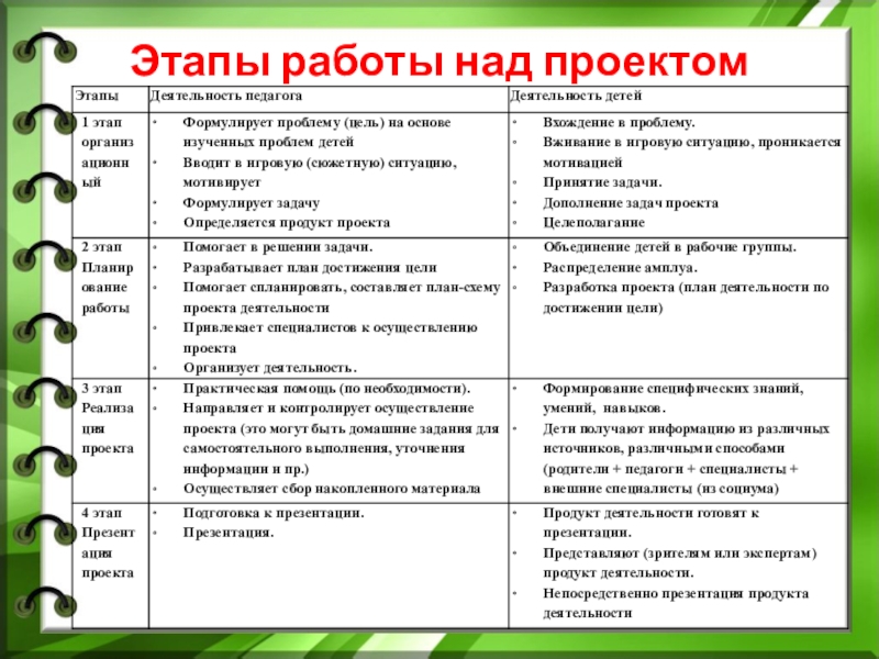 составлении совместного плана работы с детьми над проектом поддерживать детскую инициативу.