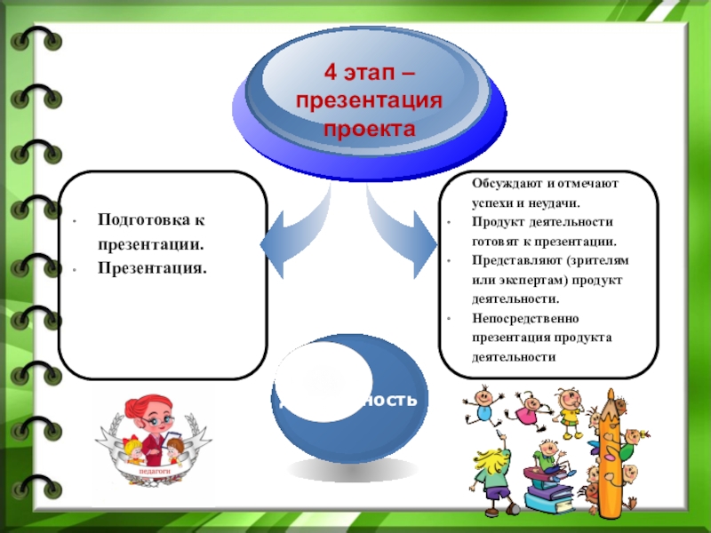 Заключительный этап проекта следует тщательно готовить и проводить в виде презентации, шоу, театрализованного действа и т.п.