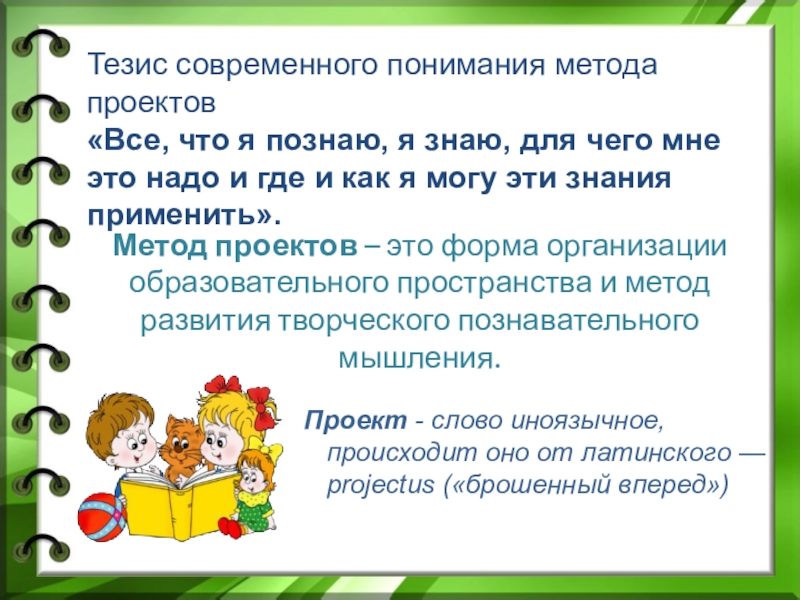 Метод проектов – это форма организации образовательного пространства и метод развития творческого познавательного мышления.
