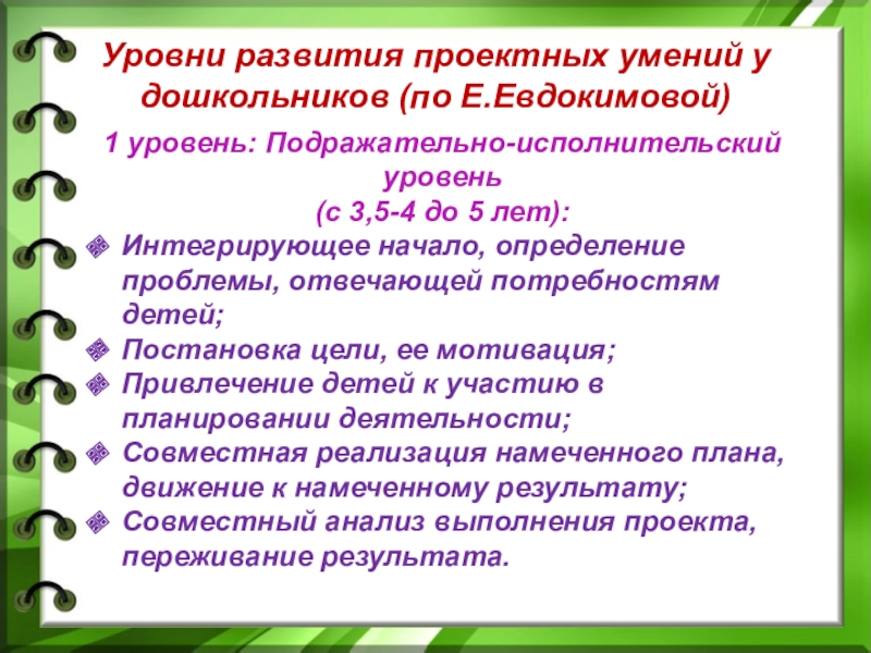 Уровни развития проектных умений у дошкольников (по Е.Евдокимовой)