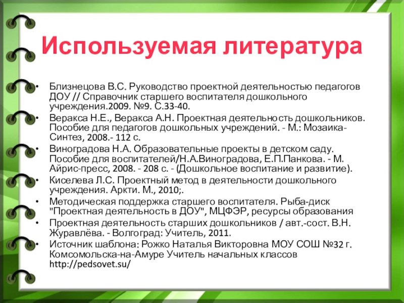 Киселева Л.С. Проектный метод в деятельности дошкольного учреждения. Аркти. М., 2010;.