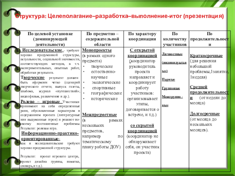 Слайд 6Структура: Целеполагание–разработка–выполнение-итог (презентация)