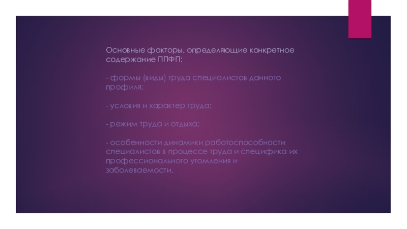 Слайд 14Основные факторы, определяющие конкретное содержание ППФП: