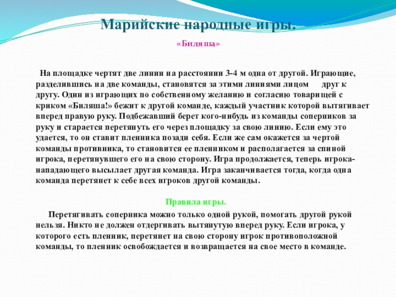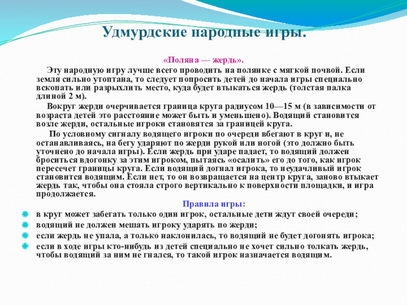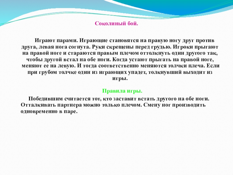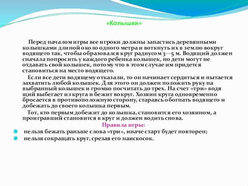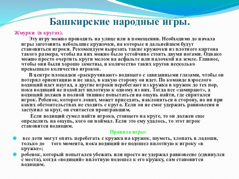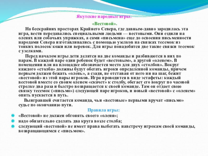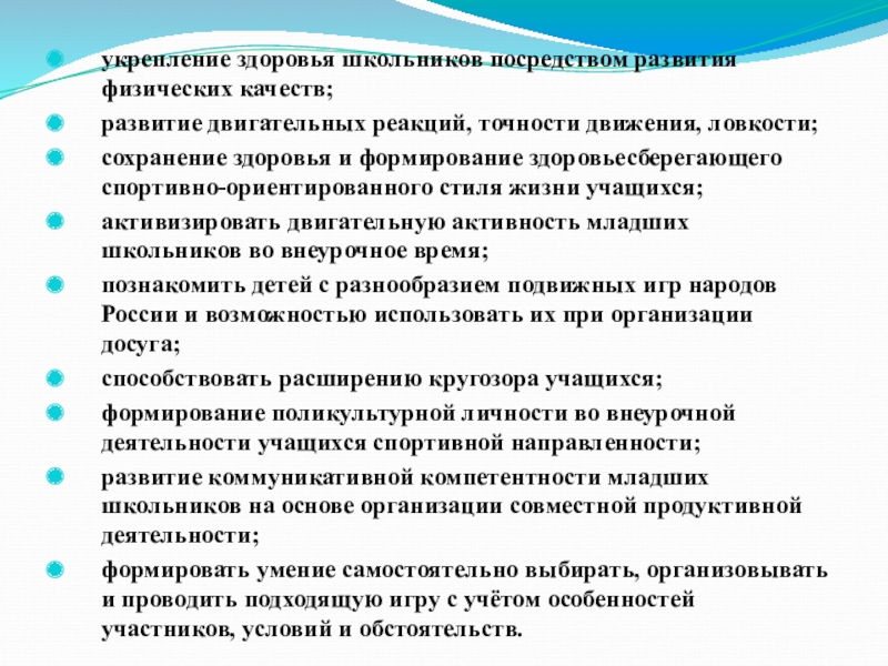 познакомить детей с разнообразием подвижных игр народов России и возможностью использовать их при организации досуга;