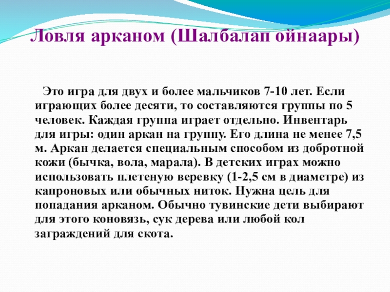 Слайд 21Ловля арканом (Шалбалап ойнаары)