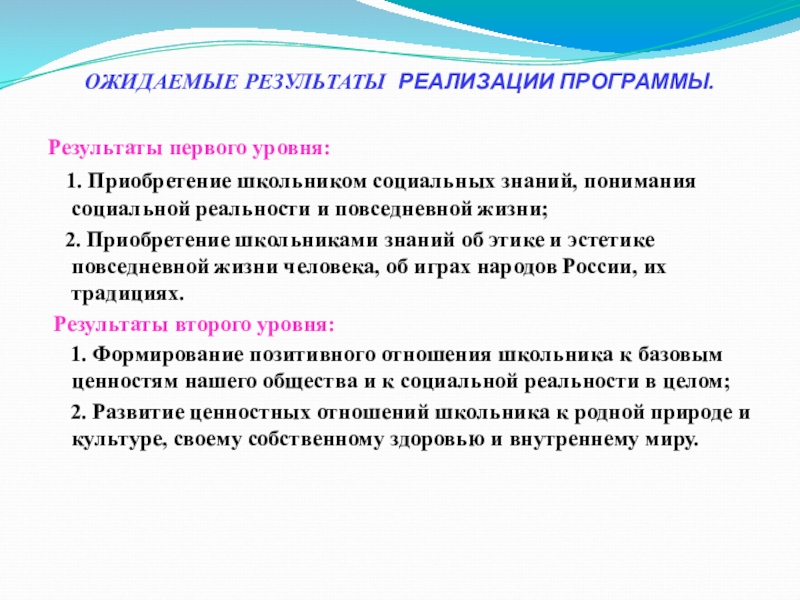 Слайд 45ОЖИДАЕМЫЕ РЕЗУЛЬТАТЫ РЕАЛИЗАЦИИ ПРОГРАММЫ.
