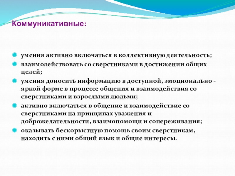 оказывать бескорыстную помощь своим сверстникам, находить с ними общий язык и общие интересы.