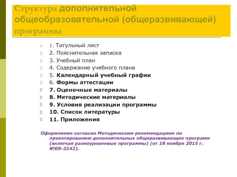 Слайд 13Структура дополнительной общеобразовательной (общеразвивающей) программы