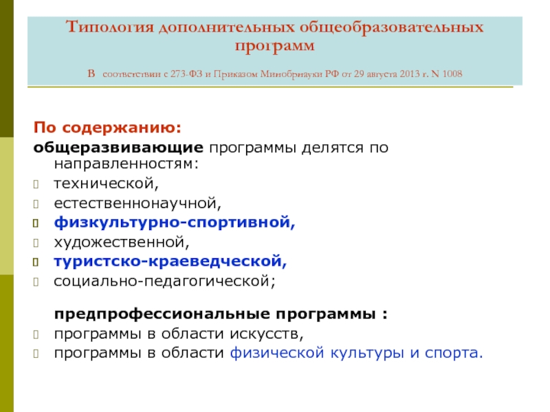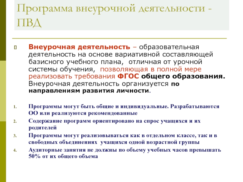 Программы могут быть общие и индивидуальные. Разрабатываются ОО или реализуются рекомендованные