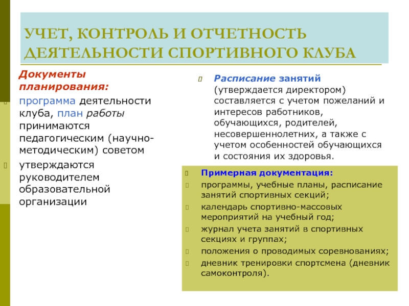 Слайд 31УЧЕТ, КОНТРОЛЬ И ОТЧЕТНОСТЬ ДЕЯТЕЛЬНОСТИ СПОРТИВНОГО КЛУБА