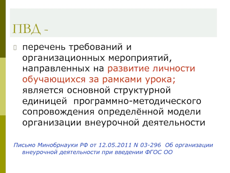 Письмо Минобрнауки РФ от 12.05.2011 N 03-296 Об организации внеурочной деятельности при введении ФГОС ОО